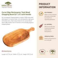 Curve Edge Rectangular Teak Wood Chopping Board (6" x 5") with Handle