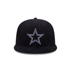 The Dallas Cowboys Color Pop Cord 59FIFTY Fitted Cap features an embroidered Cowboys logo at the front panels against a black corduroy fabrication throughout and a matching NFL Shield at the rear. Additional details include a black logo at the right-wear side and a navy undervisor.