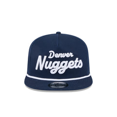 The Denver Nuggets Team Text Golfer features an embroidered Nuggets script at the front panels with a team logo at the right-wear side and a snapback closure at the rear.