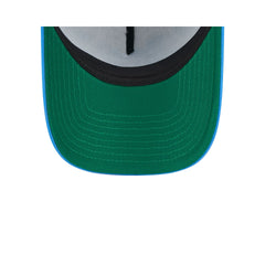 The Detroit Lions Distressed 9FORTY A-Frame Trucker features a distressed screen-printed Lions Historic wordmark and logo at the front panels with a team tag at a snapback closure at the rear and a green undervisor.