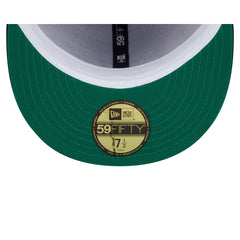 The Detroit Lions Spring Satin 59FIFTY Fitted Cap features an embroidered Lions wordmark at the front panels with a New Era pin at the top left panel and an NFL Shield logo at the rear. Additional details include a satin fabrication throughout, a logo at the right-wear side, and a green undervisor.