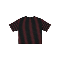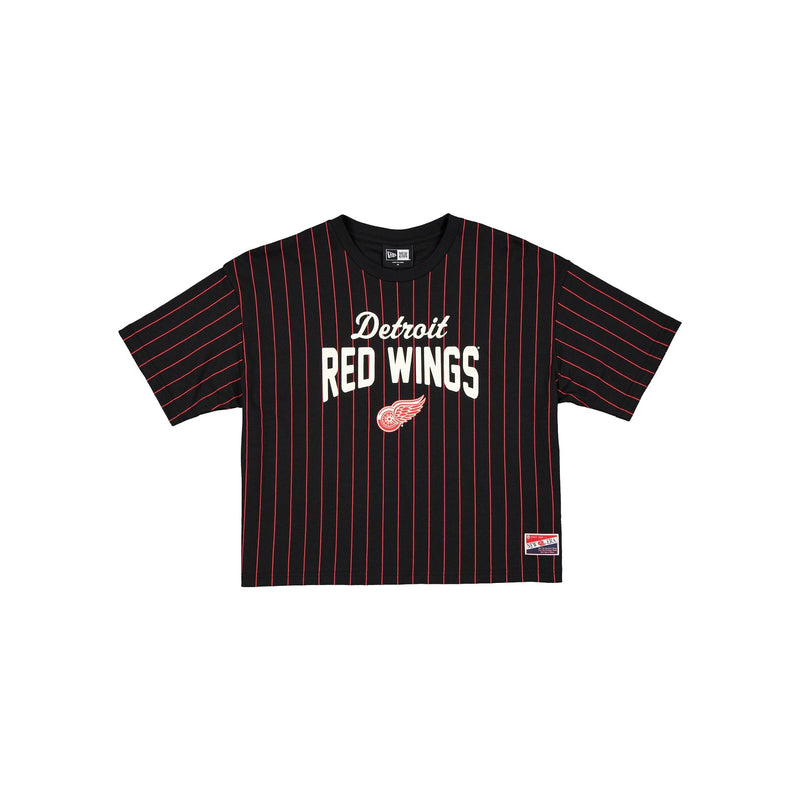 The Detroit Red Wings Throwback Women's Pinstripe T-Shirt features a screen-printed Red Wings wordmark and logo at the front with a New Era jock tag at the left hip.