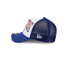The Detroit Tigers Distressed 9FORTY A-Frame Trucker features a distressed screen-printed Tigers wordmark and logo at the front panels with a team tag at a snapback closure at the rear and a green undervisor.