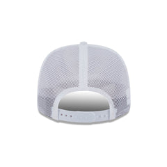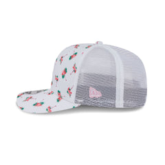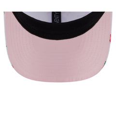 The Detroit Tigers Pattern 9SEVENTY Trucker Hat features an allover flamingo print with an embroidered Tigers logo at the front panels with an adjustable snapback closure at a mesh rear.
