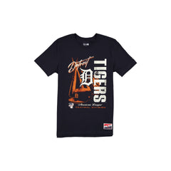 The Detroit Tigers Throwback T-Shirt features a screen-printed Tigers graphic at the front and a New Era jock tag at the left hip.