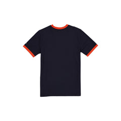 The Detroit Tigers Throwback Team T-Shirt features a screen-printed Tigers wordmark and embroidered team logo at the front with a New Era jock tag at the left hip. This t-shirt has a v-neckline.