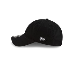 The DKNY x New York Yankees All Black 9TWENTY Adjustable Cap features an embroidered black Yankees logo at the front panels with a DKNY logo at the right-wear side and an adjustable D-Ring closure at the rear.