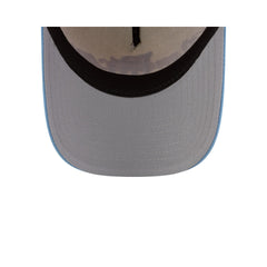 The Dominican Republic Pink 9FORTY A-Frame Snapback features an embroidered DR logo over a chainstitched team wordmark at the front panel with a color block crown. Additional details include a team wordmark above a snapback closure at the rear with a blue visor and a gray undervisor.