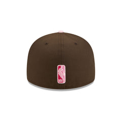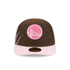 The Golden State Warriors Brains 59FIFTY Fitted Cap features an embroidered brain themed Warriors logo at the front panels with a matching NBA Logoman at the rear. Additional details include scratch details at the right-wear side with a light pink visor and a gray undervisor. This cap comes with a pre-curved visor.