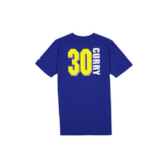 The Golden State Warriors Name & Number Stephen Curry T-Shirt features a screen-printed Warriors graphic at the front with the player's name and number at the rear.