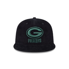 The Green Bay Packers Color Pop Cord 59FIFTY Fitted Cap features an embroidered Packers logo at the front panels against a black corduroy fabrication throughout and a matching NFL Shield at the rear. Additional details include a black logo at the right-wear side and a green undervisor.