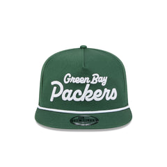 The Green Bay Packers Team Text Golfer features an embroidered Packers script at the front panels with a team logo at the right-wear side and a snapback closure at the rear.