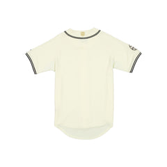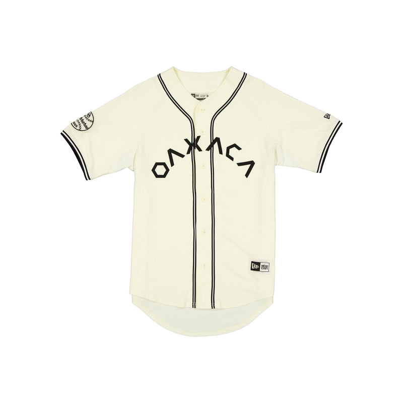The Guerreros de Oaxaca Retro Jersey features an embroidered Guerreros applique logo at the chest with a New Era Official Merchandise patch at the front, a team patch at the right-wear sleeve, and a LMB logo at the rear.
