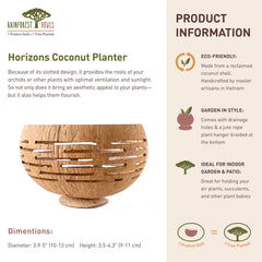 IDEAL FOR SMALL PLANTS: Designed with a built-in drainage hole to promote healthy root growth, this coconut planter is perfect for succulents, orchids, herbs, or small flowering plants.
