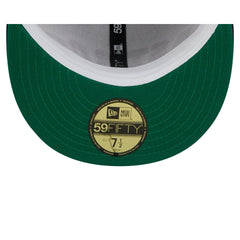 The Houston Astros Spring Satin 59FIFTY Fitted Cap features an embroidered Astros wordmark at the front panels with a New Era pin at the top left panel and an MLB Batterman logo at the rear. Additional details include a satin fabrication throughout, a logo at the right-wear side, and a green undervisor.