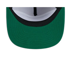 The Houston Rockets Vintage Gray Golfer features an embroidered 'PROPERTY OF' Rockets wordmark at the front panels with a team logo at the right-wear side and a rope at the visor. Additional details include a snapback closure at the rear and a green undervisor.