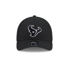 The Houston Texans Black & White 9FORTY M-Crown A-Frame Snapback features an embroidered Texans logo at the front panels with an adjustable snapback closure at the rear and a gray undervisor.