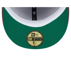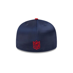 The Houston Texans Spring Satin 59FIFTY Fitted Cap features an embroidered Texans wordmark at the front panels with a New Era pin at the top left panel and an NFL Shield logo at the rear. Additional details include a satin fabrication throughout, a logo at the right-wear side, and a green undervisor.