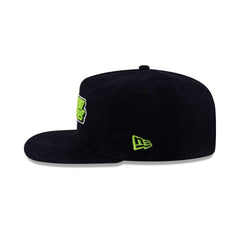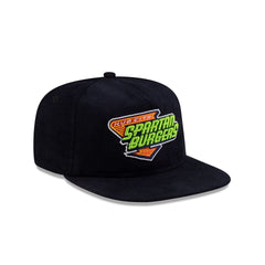 The Hub City Spartanburgers Navy Corduroy Golfer features an embroidered Spartanburgers logo at the front panels against a corduroy fabrication. Additional details include a snapback closure at the rear and a green undervisor.