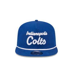 The Indianapolis Colts Team Text Golfer features an embroidered Colts script at the front panels with a team logo at the right-wear side and a snapback closure at the rear.
