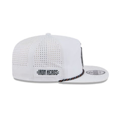 The Iron Heads GC Performance Rope Golfer features an embroidered Iron Heads GC logo at the front panels with breathable performance fabric throughout the cap. Additional details include a team patch at the right-wear side, an adjustable drawstring closure at the rear, and a dark gray undervisor.