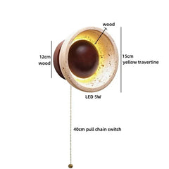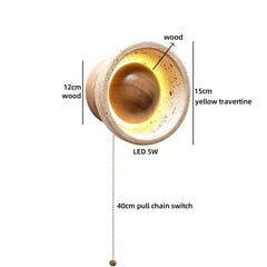 LED Wall Lamp with Switch – Wood & Travertine Wall Sconce for Bedroom, Living Room, or Stair Lighting