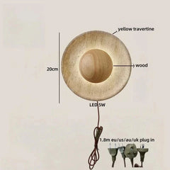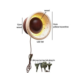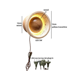 Natural Materials: Made with a wooden body and yellow travertine stone lampshade.