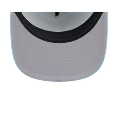 The Kansas City Royals Retro Script 9FIFTY A-Frame Trucker features a distressed screen-printed Royals script wordmark and team logo at the front panels with a snapback closure at a mesh rear and a gray undervisor.
