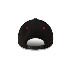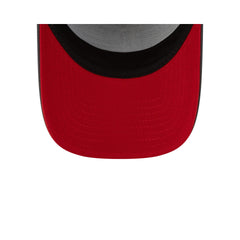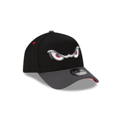 The Lake Elsinore Storm Halloween Red 9FORTY A-Frame Snapback features an embroidered Storm themed logo at the front panels with an adjustable snapback closure at the rear, a gray visor, and a red undervisor.