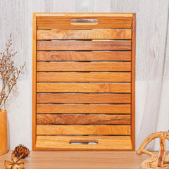This rectangular serving tray is handcrafted from durable teak wood and features sturdy side handles for easy carrying. With a spacious surface, it is ideal for serving breakfast, coffee, bread, tea, charcuterie, or meals in the living room or at gatherings. The natural wood grain makes each tray unique, while the smooth finish is safe for food use.
