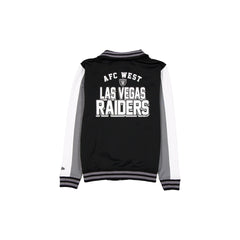 The Las Vegas Raiders Game Day Jacket features an embroidered Raiders logo at the left chest and graphic at the back. Additional details include pockets and a zipper closure.