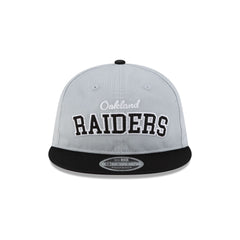 The Las Vegas Raiders International Games Series Historic Retro Crown 9FIFTY Snapback features an embroidered Raiders wordmark at the front panels with a historic logo at the right wear side and an adjustable snapback closure at the rear.