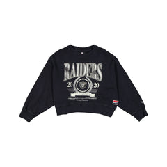 The Las Vegas Raiders Throwback Women's Crewneck features a screen-printed Raiders graphic at the front and a New Era jock tag at the left hip.