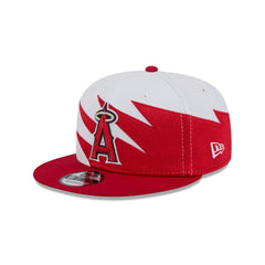 The Los Angeles Angels Jagged 9FIFTY Snapback features an embroidered Angels logo at the front panels with a jagged pattern fabrication throughout the cap. Additional details include a snapback closure at the rear and a gray undervisor.