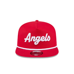 The Los Angeles Angels Team Text Golfer features an embroidered Angels script at the front panels with a team logo at the right-wear side and a snapback closure at the rear.
