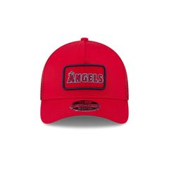 The Los Angeles Angels Tonal Patch 9FORTY M-Crown A-Frame Trucker features an embroidered Angels wordmark patch at the front panels with a team tag on a snapback closure at a mesh rear.