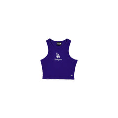 The Los Angeles Dodgers Leisure Cropped Women's Tank Top features a screen-printed Dodgers logo and wordmark at the front. The tank top is cropped.
