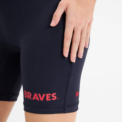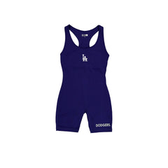 The Los Angeles Dodgers Leisure Women's Bodysuit features a screen-printed Dodgers logo at the front and wordmark at the left leg.