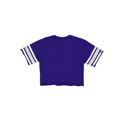 The Los Angeles Dodgers Throwback Cropped Women's T-Shirt features a screen-printed Dodgers graphic at the front with a New Era jock tag at the left hip. This shirt has a cropped fit.