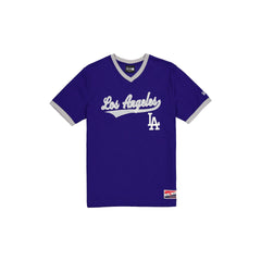 The Los Angeles Dodgers Throwback Team T-Shirt features a screen-printed Dodgers wordmark and embroidered team logo at the front with a New Era jock tag at the left hip. This t-shirt has a v-neckline.