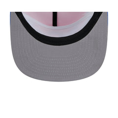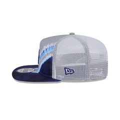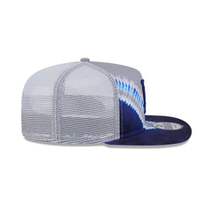 The Los Angeles Dodgers Tie-Dye Golfer features an embroidered Dodgers logo at the front panels against a tie-dye front panel. Additional details include a snapback closure at a mesh rear and a gray undervisor.