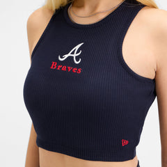The Los Angeles Lakers Leisure Cropped Women's Tank Top features a screen-printed Lakers logo and wordmark at the front. The tank top is cropped.