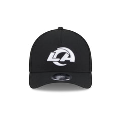 The Los Angeles Rams Black & White 9FORTY M-Crown A-Frame Snapback features an embroidered Rams logo at the front panels with an adjustable snapback closure at the rear and a gray undervisor.