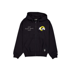 The Los Angeles Rams International Games Full-Zip Hoodie features an embroidered Rams graphic at the front.