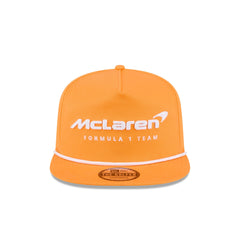 The McLaren Formula 1 Team Rib Knit Logo Golfer features an embroidered rib knit McLaren logo at the front panels with a logo at the right-wear side. Additional details include a rope at the visor and a snapback closure at the rear.