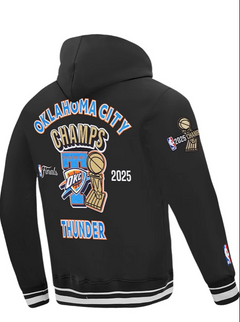 Stay in style while you cheer on the Thunder in this Oklahoma City Thunder Black Long Sleeve 2025 Finals Champions Fashion Hood! This Long Sleeve Fashion Hood features a chenille and satin embroidered team patches on chest and back. It's designed for the ultimate comfort while cheering for Oklahoma City Thunder.
