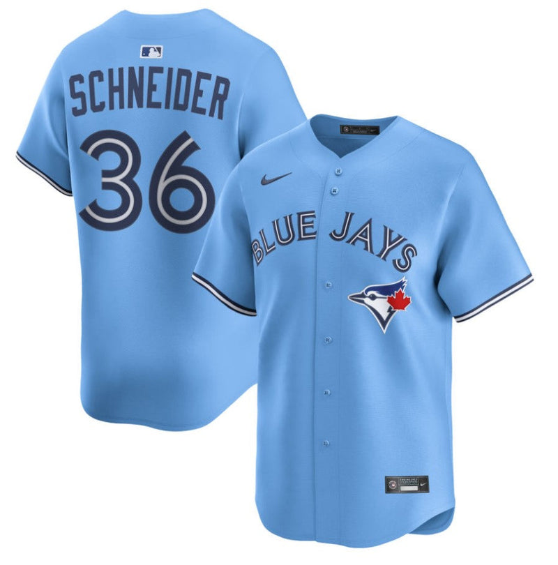Men's Toronto Blue Jays Davis Schneider Powder Blue MLB Baseball Player Jersey
