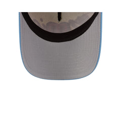 The Mexico Baseball Pink 9FORTY A-Frame Snapback features an embroidered Mexico Baseball logo over a chainstitched team wordmark at the front panel with a color block crown. Additional details include a team wordmark above a snapback closure at the rear with a blue visor and a gray undervisor.