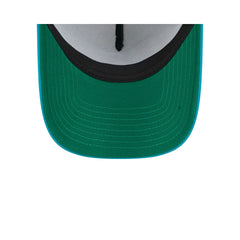 The Miami Dolphins Distressed 9FORTY A-Frame Trucker features a distressed screen-printed Dolphins Historic wordmark and logo at the front panels with a team tag at a snapback closure at the rear and a green undervisor.