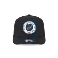 The Miami Marlins Circle Patch 9SEVENTY Stretch-Snap Cap features a screen-printed Marlins logo on a woven patch at the front panels with a snapback closure at the rear.